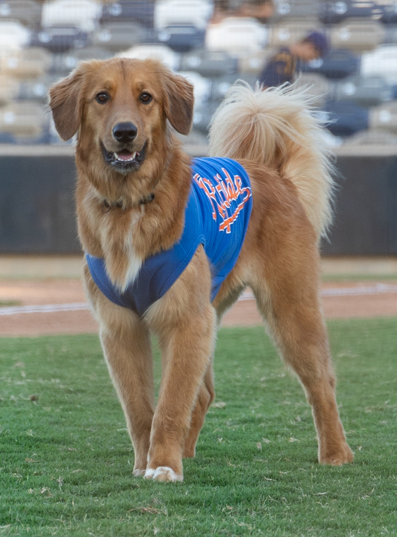 Omaha loves the spotlight. During her first few bat retrieval attempts, she milks the crowd and takes a circuitous route back to the dugout with a wood baseball bat in her mouth. Omaha loves the crowd applause and makes sure everyone in the stadium knows she is not your run of the mill bat girl.